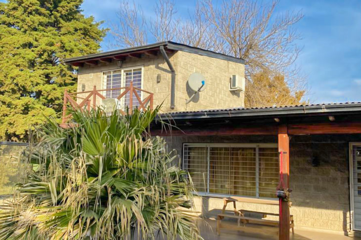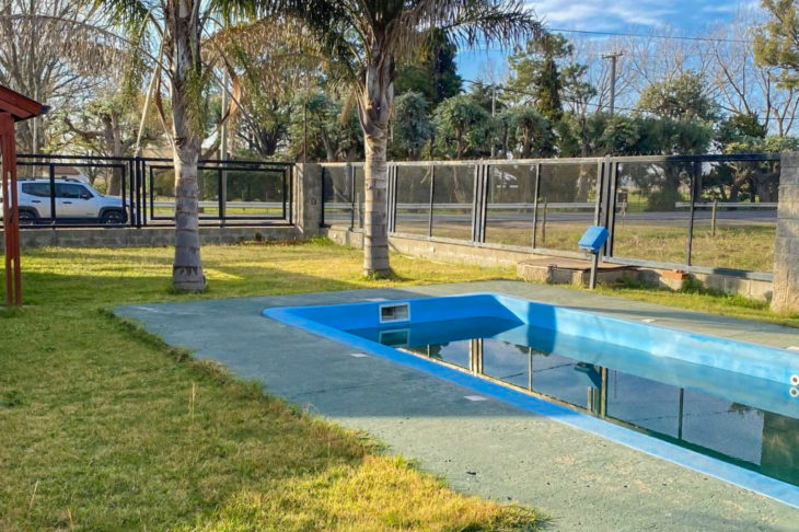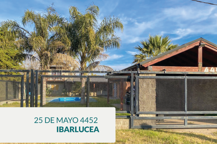 La propiedad está construída sobre un lote sobre la ruta 25 de mayo de 13 m2 de frente x 33 m2 de fondo. Planta Baja: Living-estar. Cocina-comedor (alacenas, bajomesada, isla de Nogal.) 1 dormitorio con vista al parque jardìn. Baño completo . Escalera de madera. Planta Alta: 1 dormitorio amplio con balcòn y excelente vista despejada.. La propiedad cuenta con piscina 8,5 x 3,5 con luces y equipo de filtros.Amplio parque forestado e iluminación de reflectores con sensores lumìnicos. Galerìa de 40 m2 con parrillero. Baño exterior. Cochera cubierta para 4 vehículos. Mejoras: aberturas de aluminio. Piso porcelanato. Termotanque. Posee cerco perimetral de maya de acero. Apta para uso comercial (alquileres temporarios, eventos, etc.) Acceso fluído y cómodo.