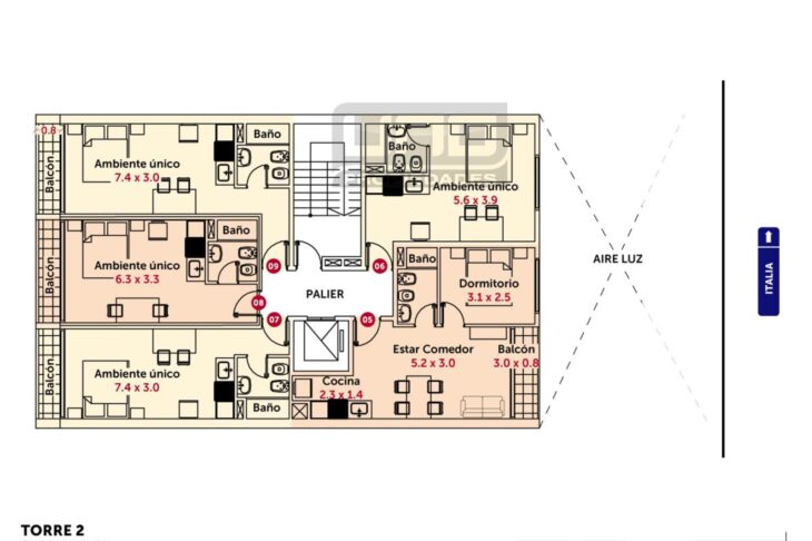 Excelente monoambiente ubicado sobre calle Italia entre Montevideo y Zeballos. A metros de Avenida Pellegrini y Bv. Oroño. Zona de Facultades, Sanatorios, etc. Ambiente único muy luminoso.